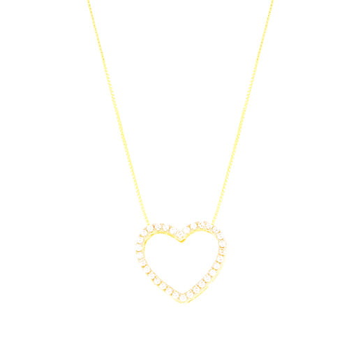 Colar Coração Vazado Cravejado Médio Folheado a Ouro 18K