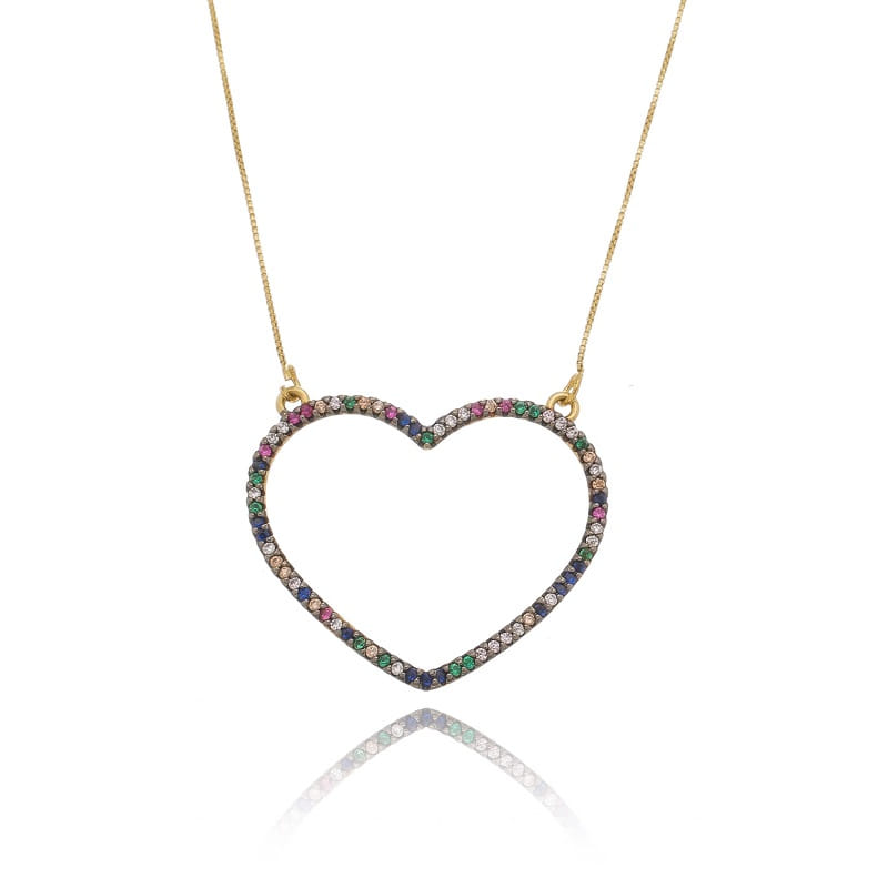 Colar Coração Vazado Rainbow Folheado a Ouro 18K