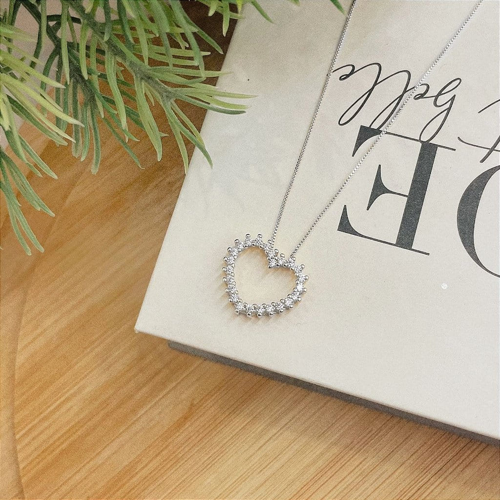 Colar Coração Vazado Cravejado Ponteiras Folheado a Prata 925