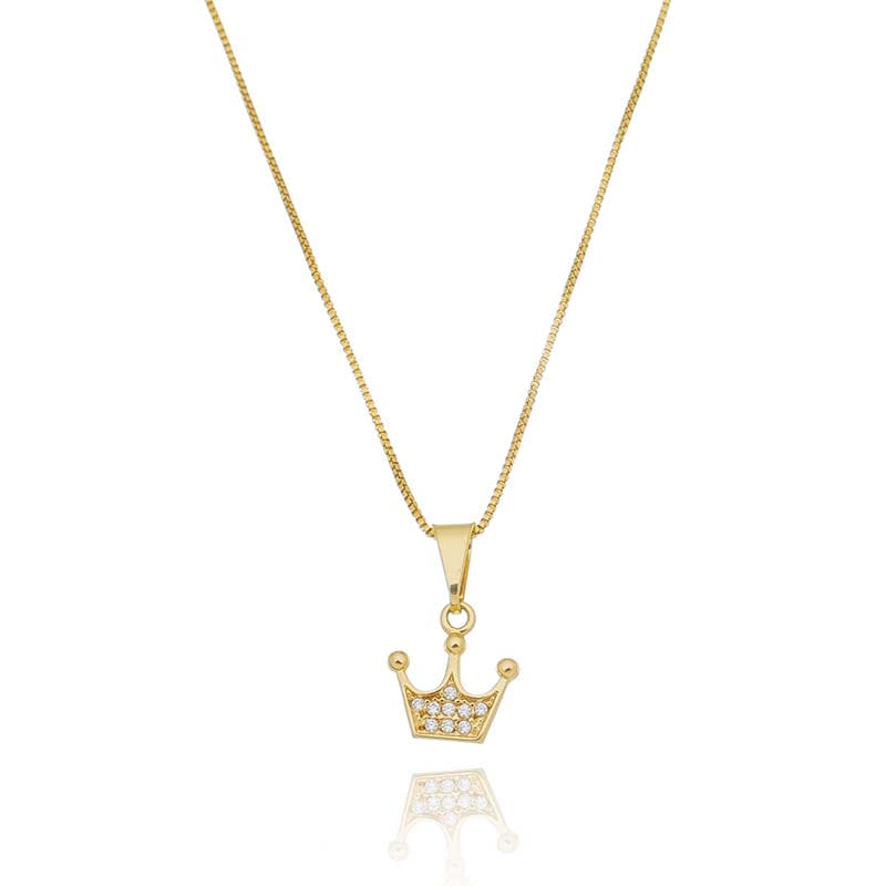 Colar Coroa Cravejado 3 Pontas Folheado a Ouro 18K