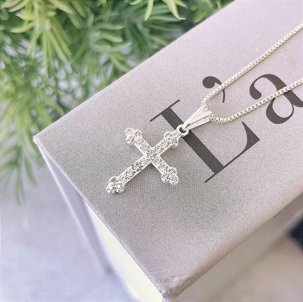Colar Cruz Cravejada Cristal Folheado a Prata 925