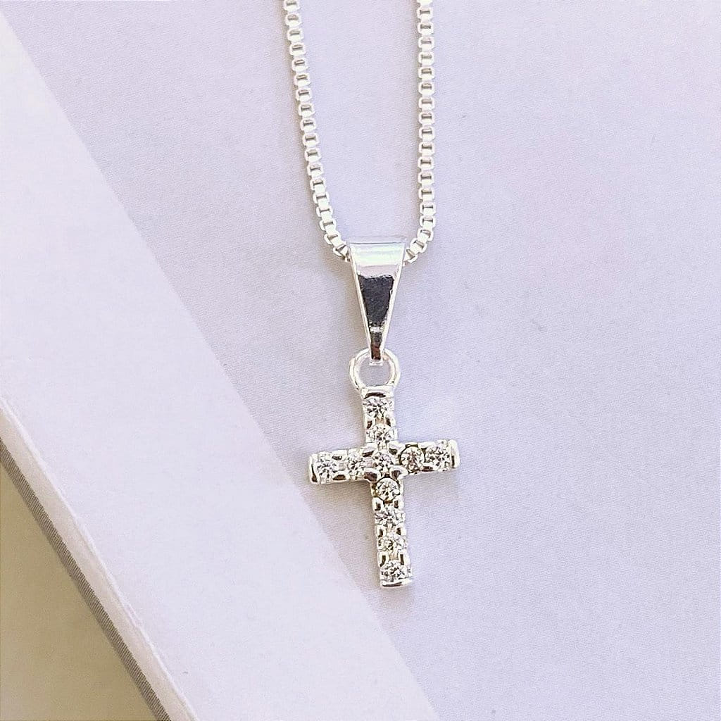Colar Cruz Cravejada Cristal Pequena Folheado a prata 925