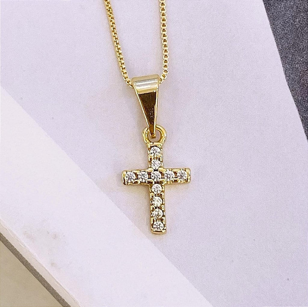 Colar Cruz Cravejada Pequena Folheado a Ouro 18K