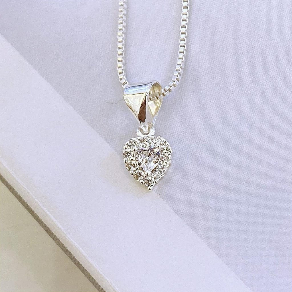 Colar de Coração com Borda Cravejada e Zirconia Cristal Centro Folheado a prata 925