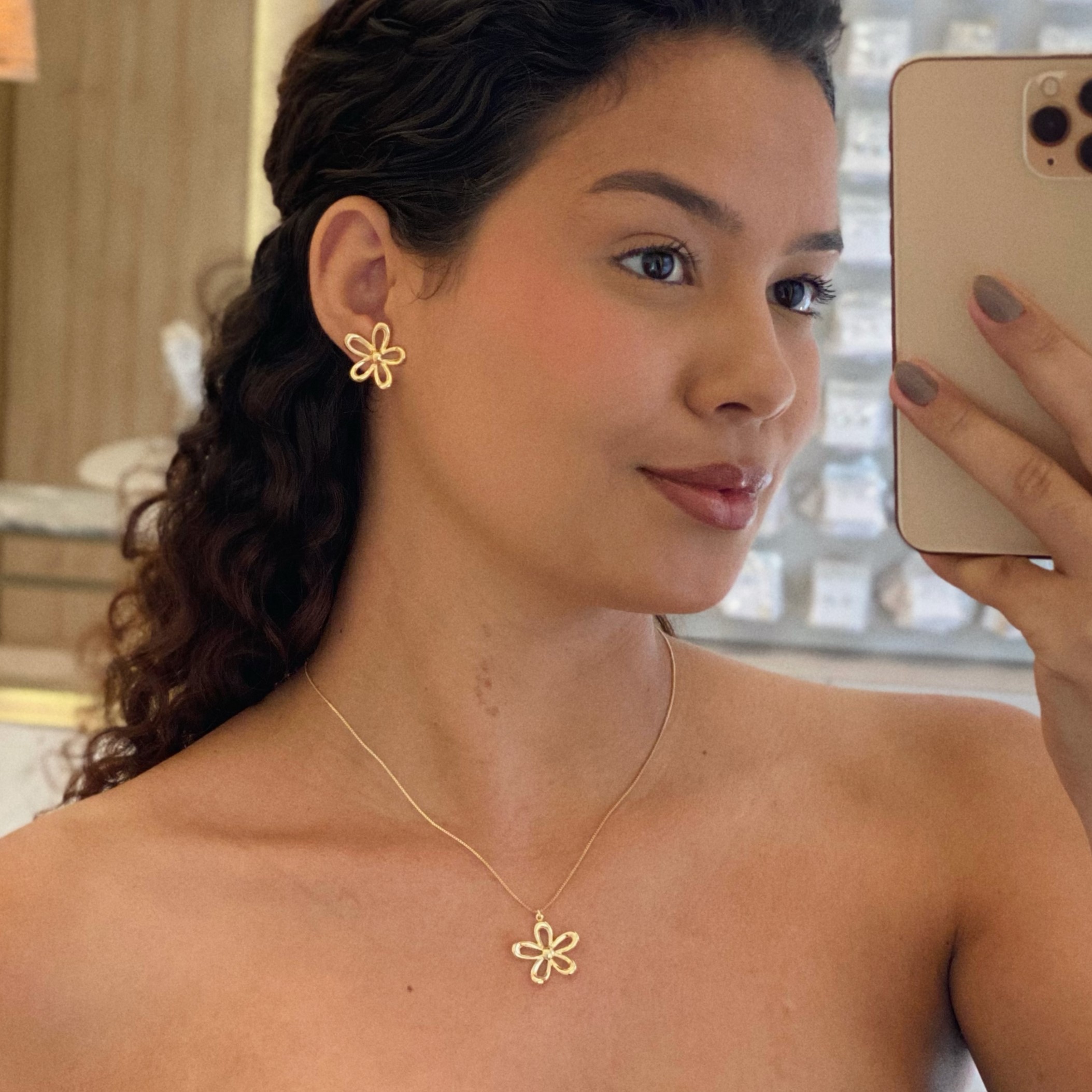Colar de Flor Pélatas Vazadas Folheado a ouro 18K
