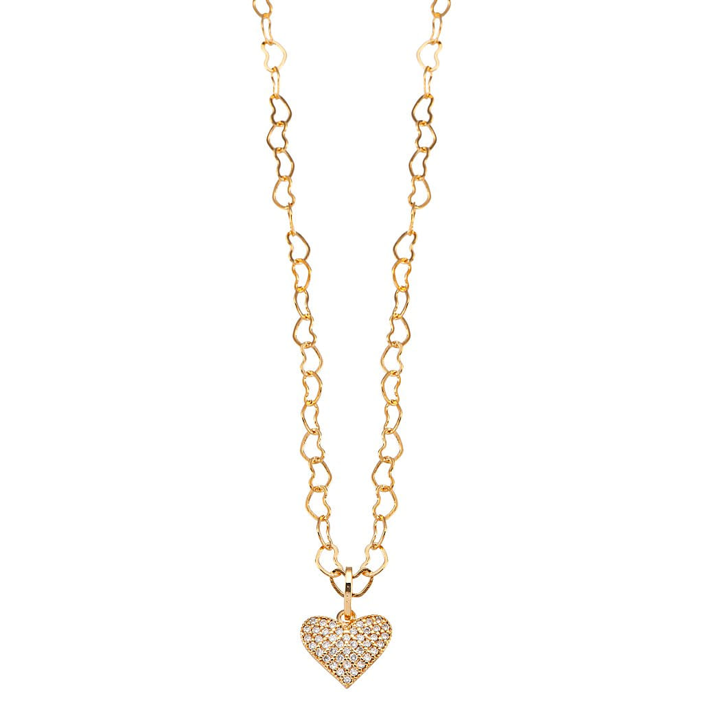 Colar Elo Corações Pingente Coração Cravejado Cristal Folheado a Ouro 18K