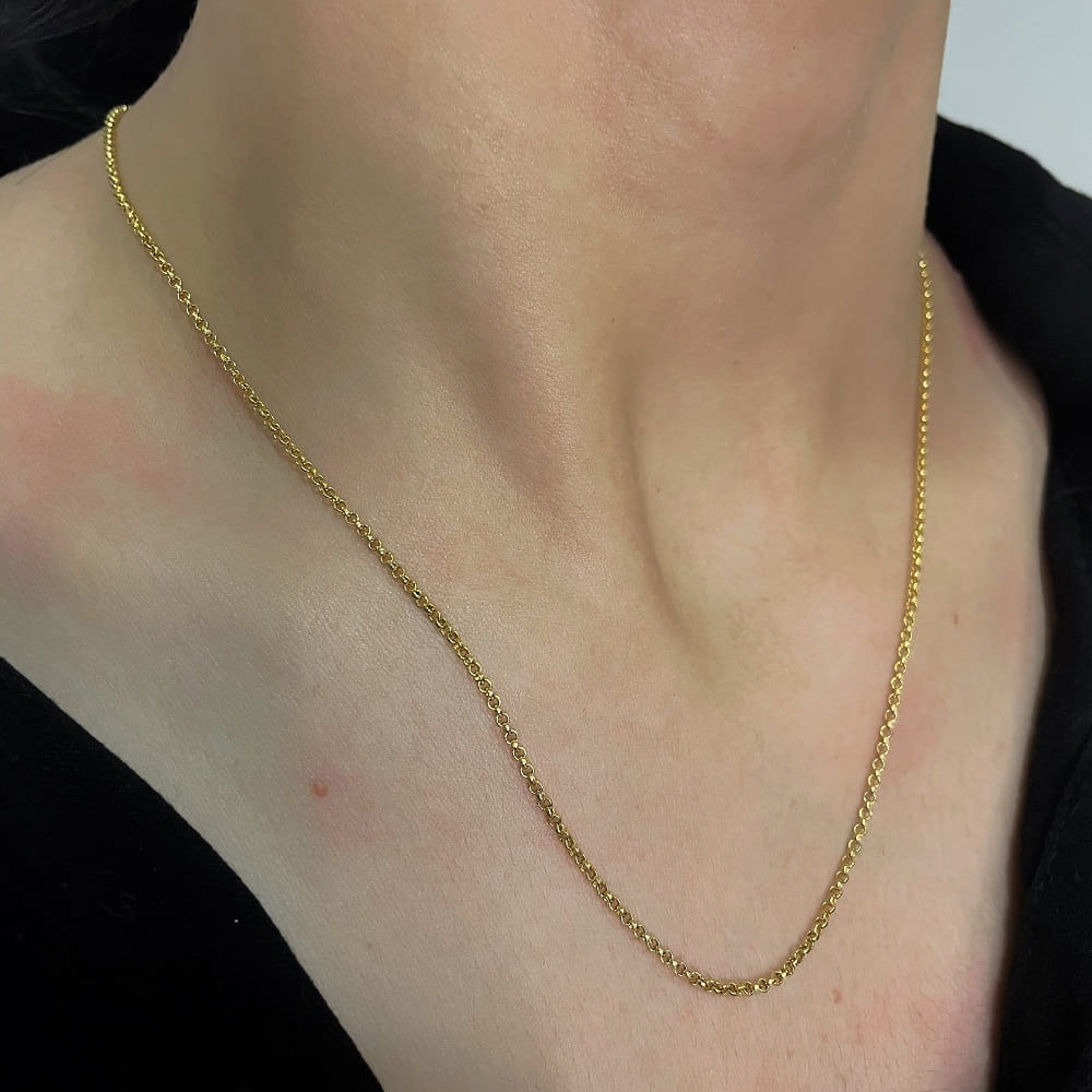 Colar Elo Português 1Mm Folheado a Ouro 18K