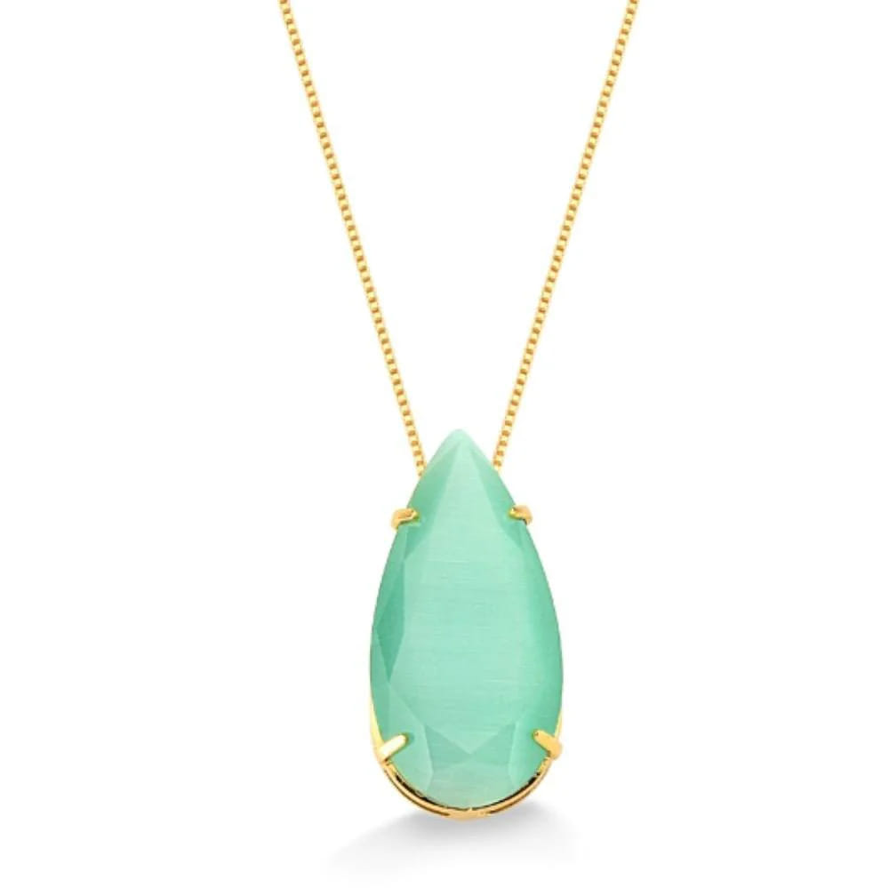 Colar Gota Grande Verde Leitoso 70Cm Folheado a Ouro 18K