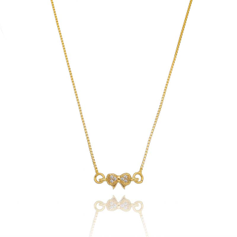 Colar Laço Cravejado Pequeno Folheado a Ouro 18K