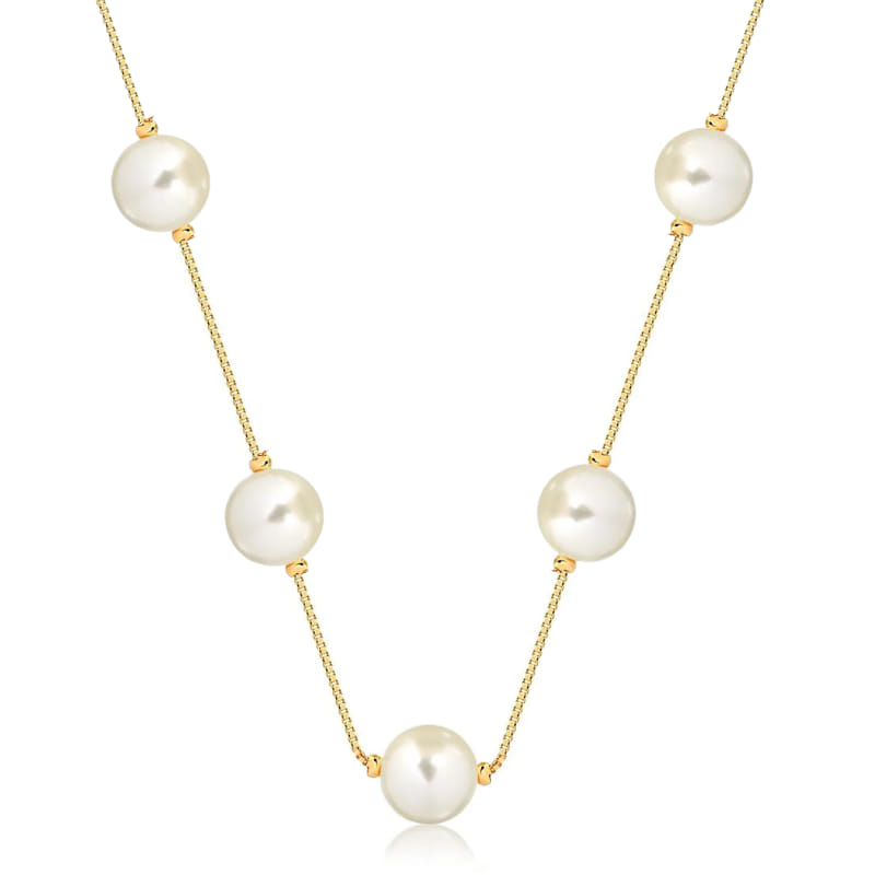 Colar Longo Com 7 Pérolas Folheado a Ouro 18K