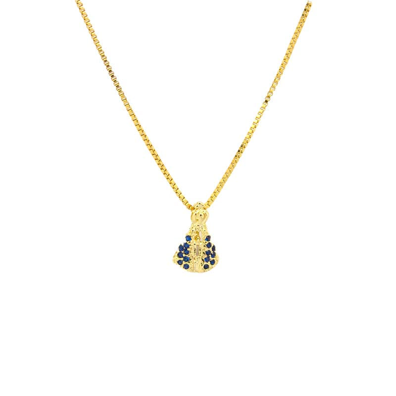 Colar Nossa Senhora Aparecida Manto Azul Folheado a Ouro 18K