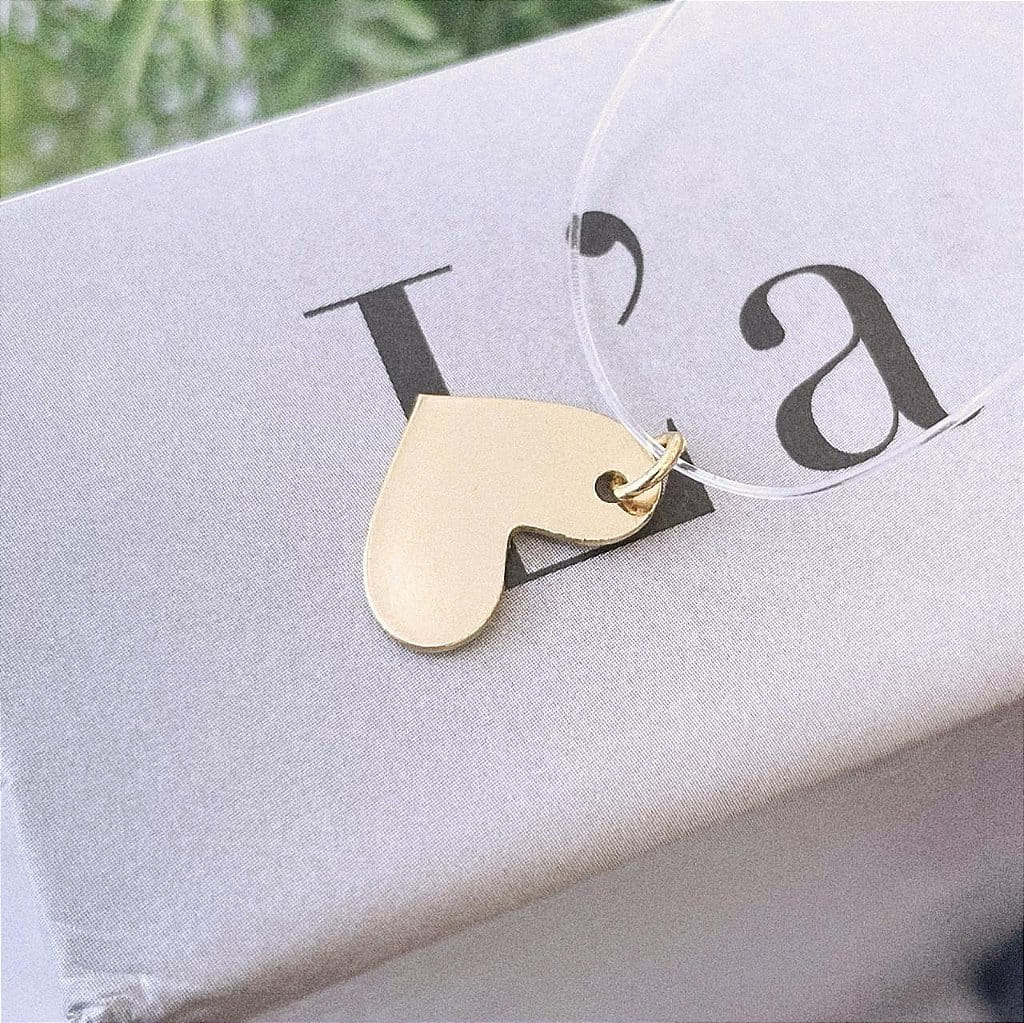 Colar Nylon Coração Chapa Desenhado Folheado a Ouro 18K
