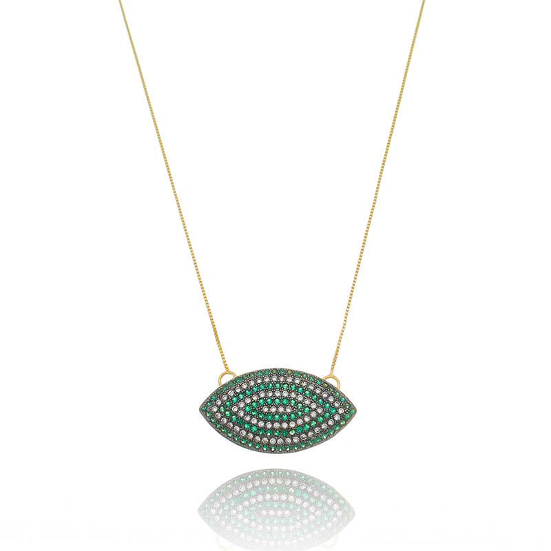 Colar Olho Cravejado Verde Folheado a Ouro 18K
