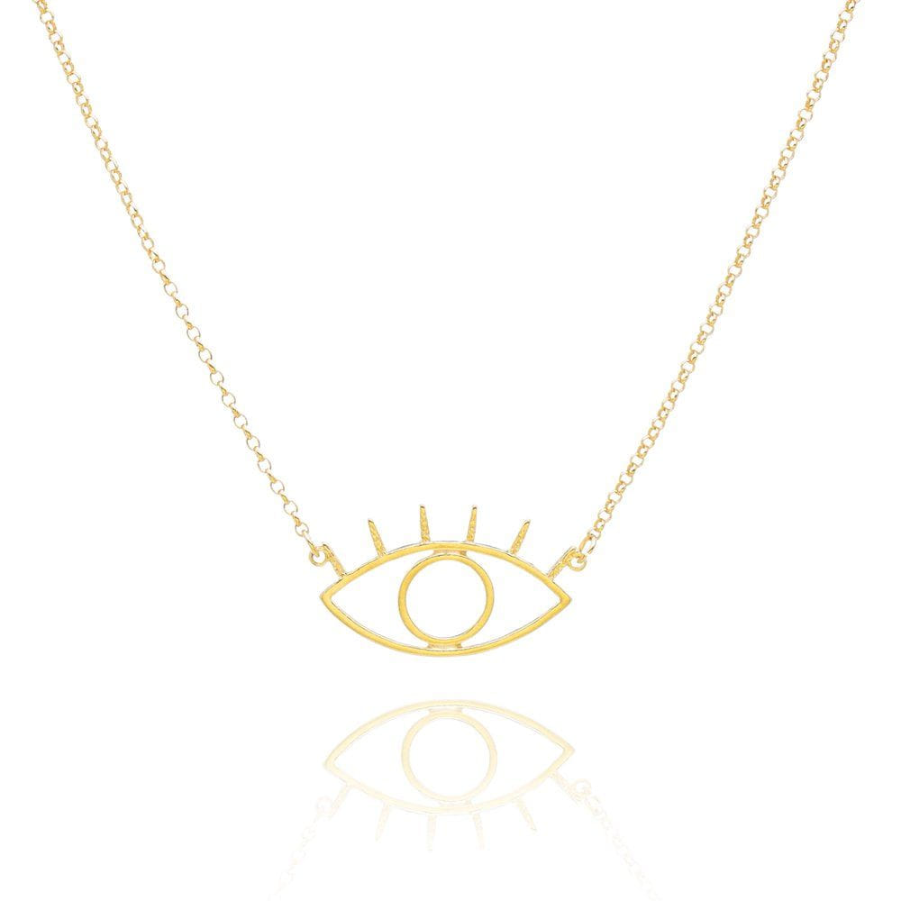 Colar Olho Grego Cilios Folheado a Ouro 18K