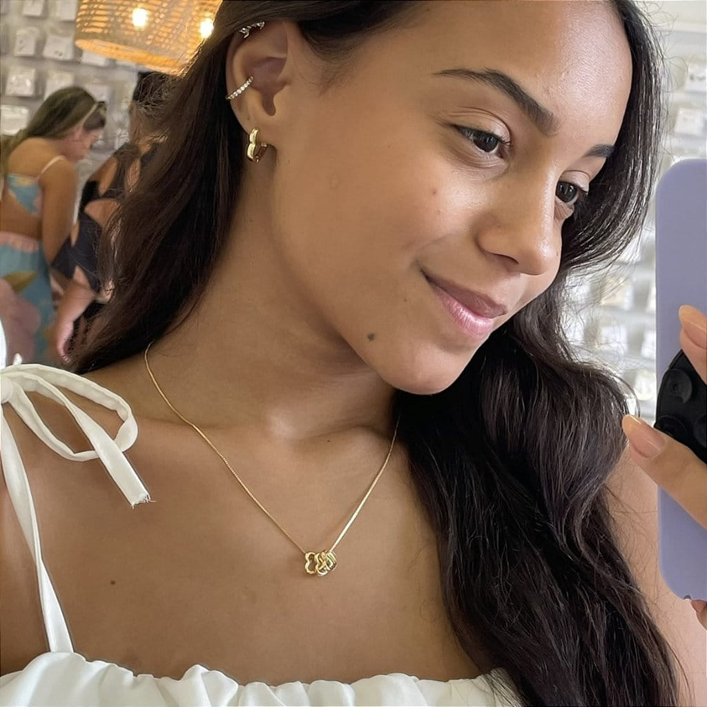 Colar Pingentes Corações Passantes Vazados Folheado a ouro 18K
