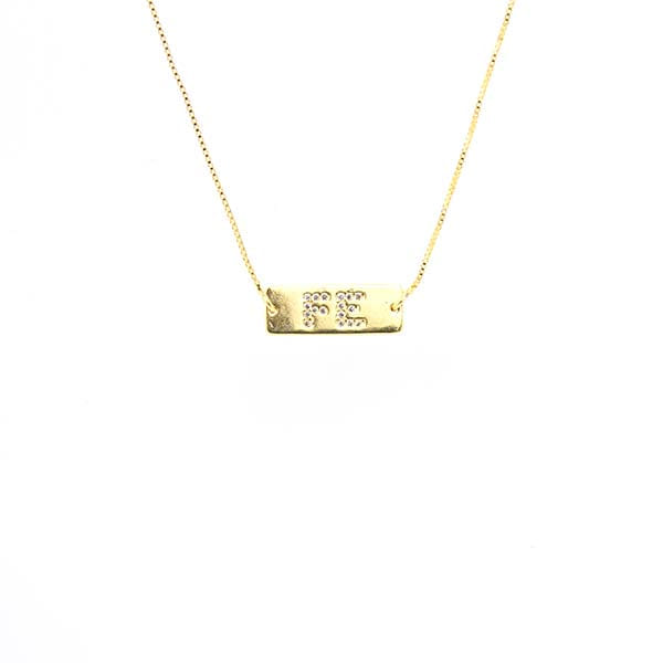 Colar Placa Fé Cravejado Folheado a Ouro 18K