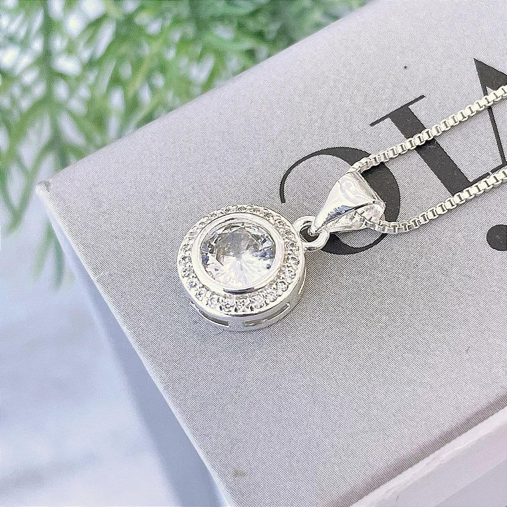 Colar Redondo Com Zirconia Cristal Central e Borda Cravejada Folheado a prata 925