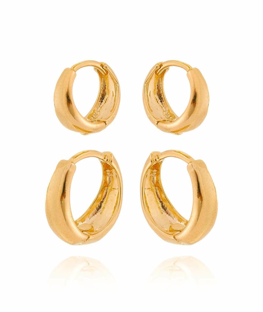 Folheado a Ouro 18K, o acabamento polido confere um brilho refinado e duradouro às peças, destacando sua beleza e qualidade. O design abaulado adiciona um toque de volume e elegância, tornando o duo ideal tanto para o uso diário quanto para eventos especiais.