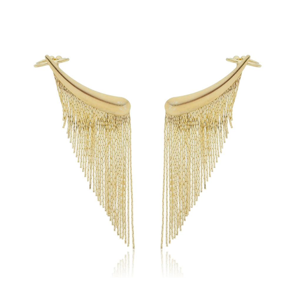 Brinco Earcuff Gota Franjas Folheado a Ouro 18K
