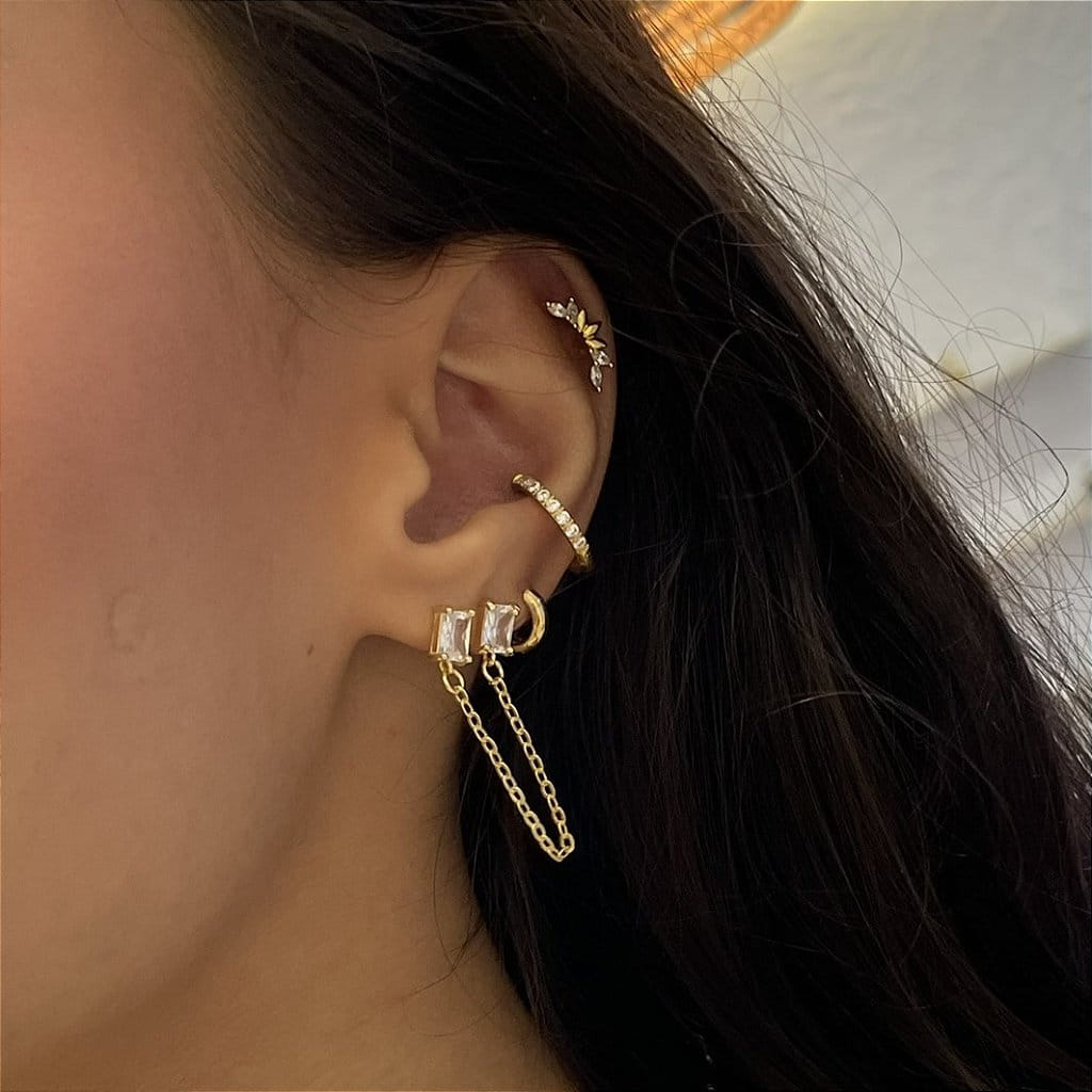 Earline Dois Furos Zircônia Retangular Cristal Folheado a ouro 18K
