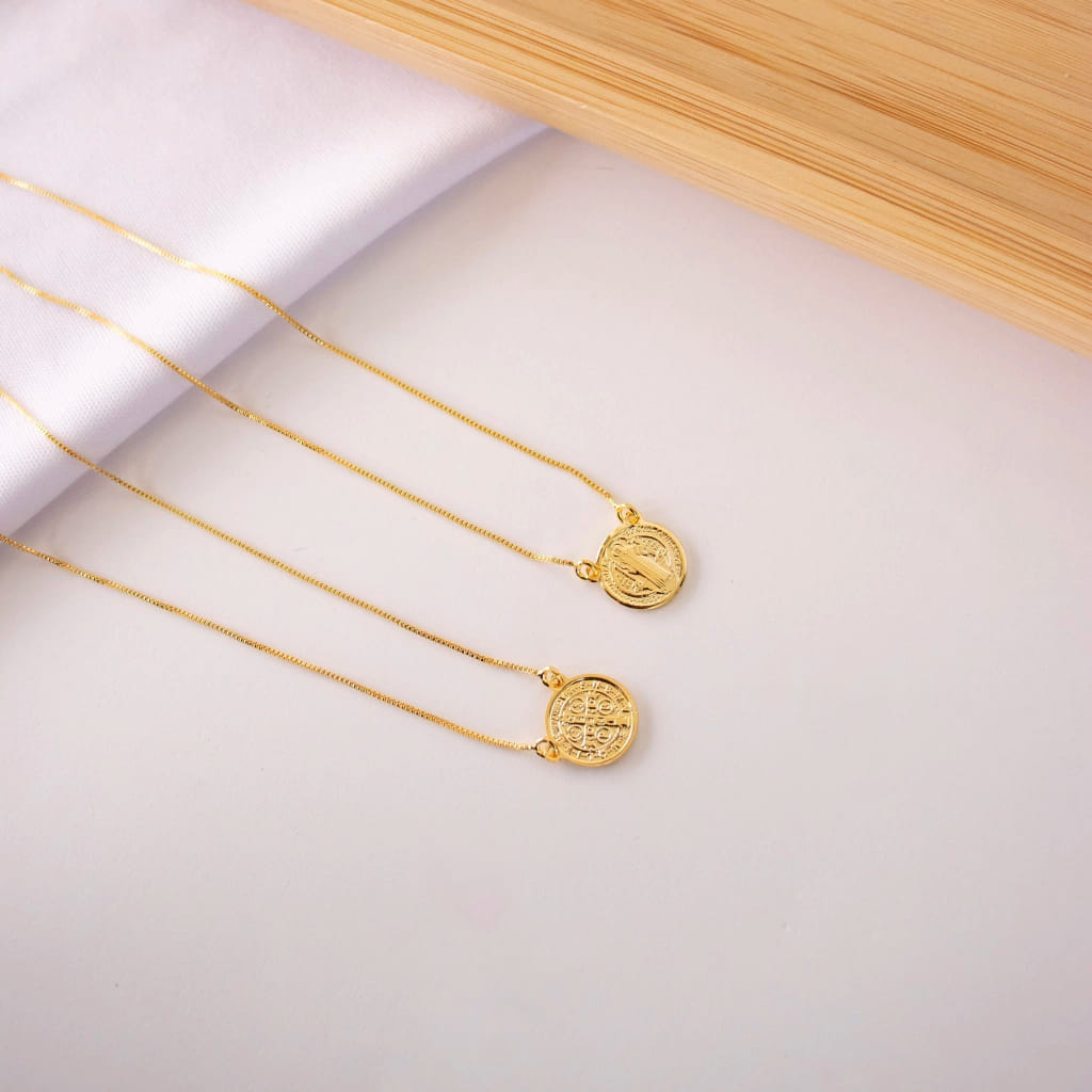 Colar Escapulário Veneziano São Bento Folheado a Ouro 18K