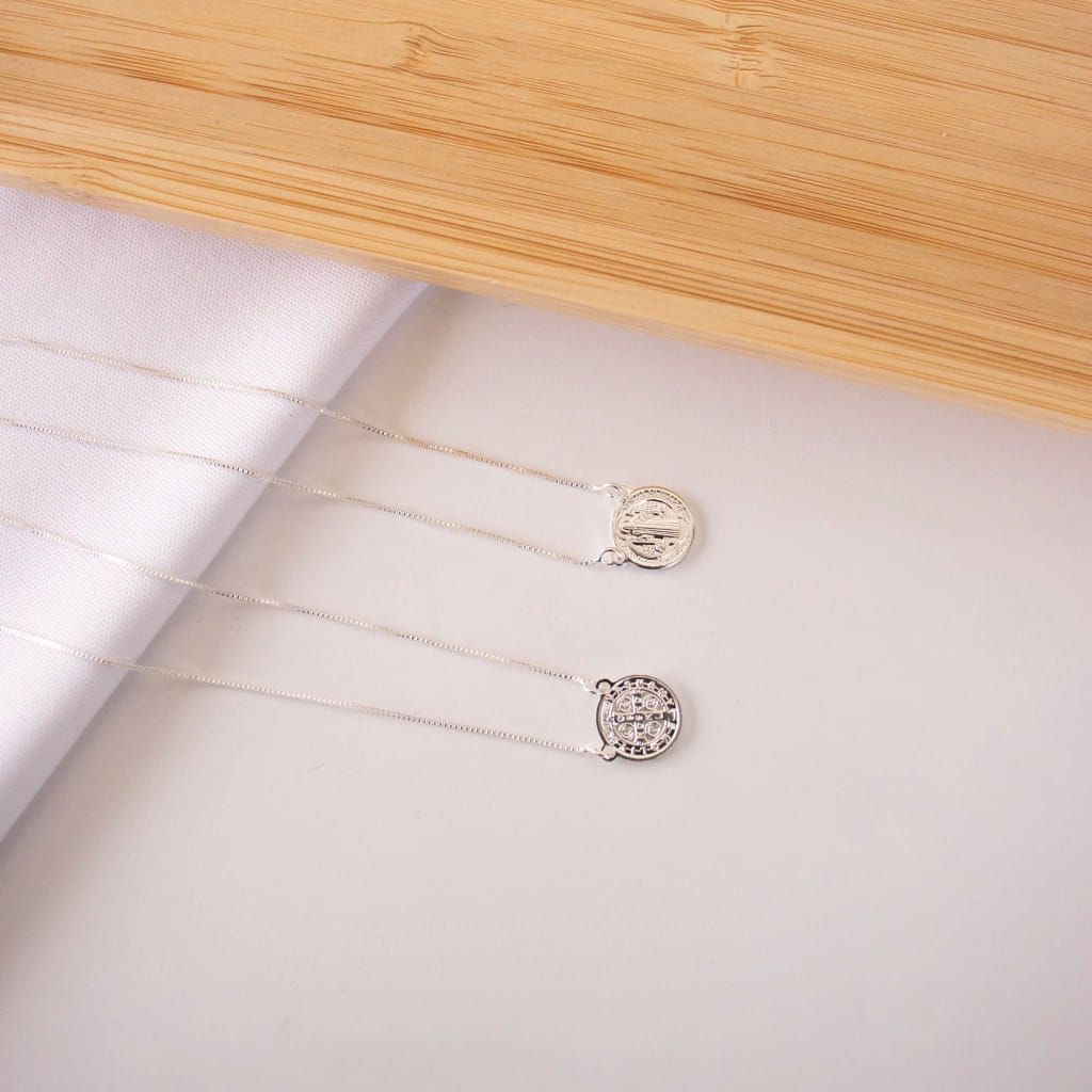 Escapulário Veneziano São Bento Folheado a Prata 925