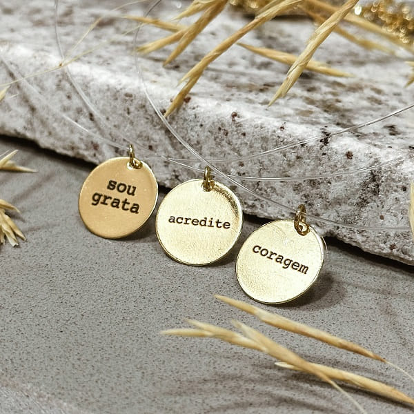 Descrição: O Kit Inspiração 3 Colares de Nylon é uma coleção única de joias folheadas a ouro 18K que transmitem mensagens inspiradoras. Cada colar tem sua própria palavra: "Acredite", "Sou Grata" e "Coragem". Use essas joias para lembrar-se diariamente de acreditar em si mesmo, ser grato pelas bênçãos da vida e ter coragem para enfrentar desafios.