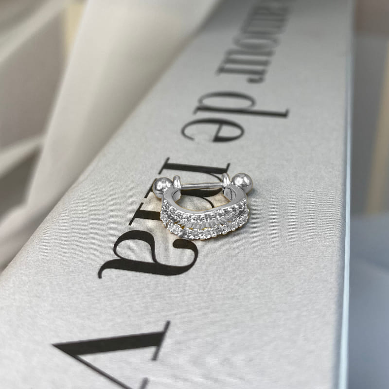 Piercing 2 em 1 Meia Argola 2 Fios Cravejados Folheado a Prata 925