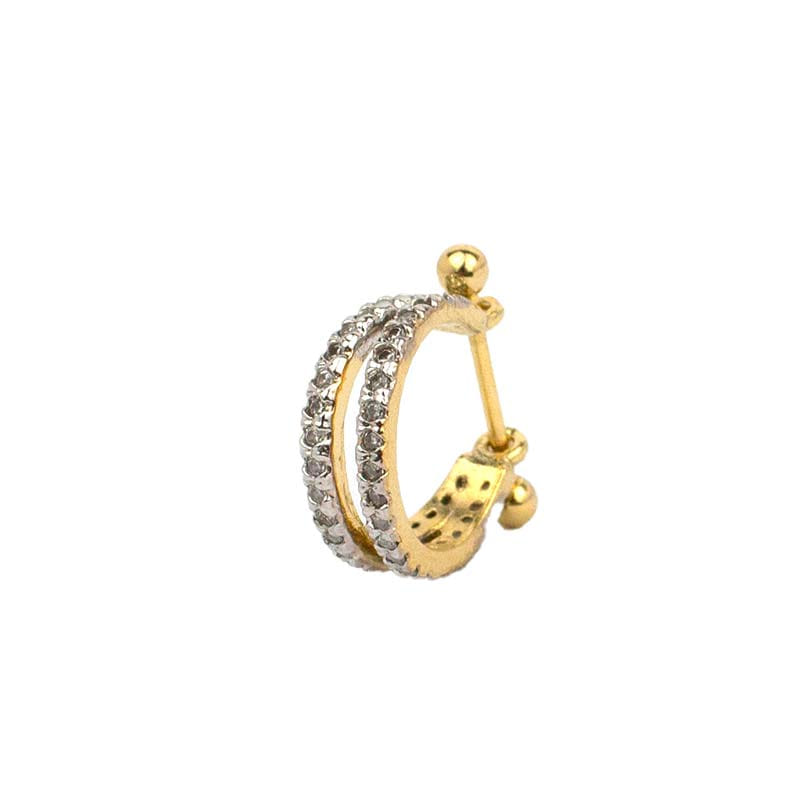 Piercing 2 Em 1 Meia Argola Dois Fios Cravejados Folheado a Ouro 18K
