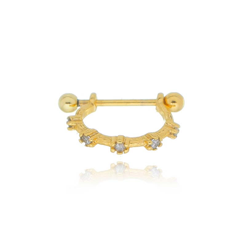 Piercing 2 Em 1 Meia Argola Pontos De Luz Folheado a Ouro 18K