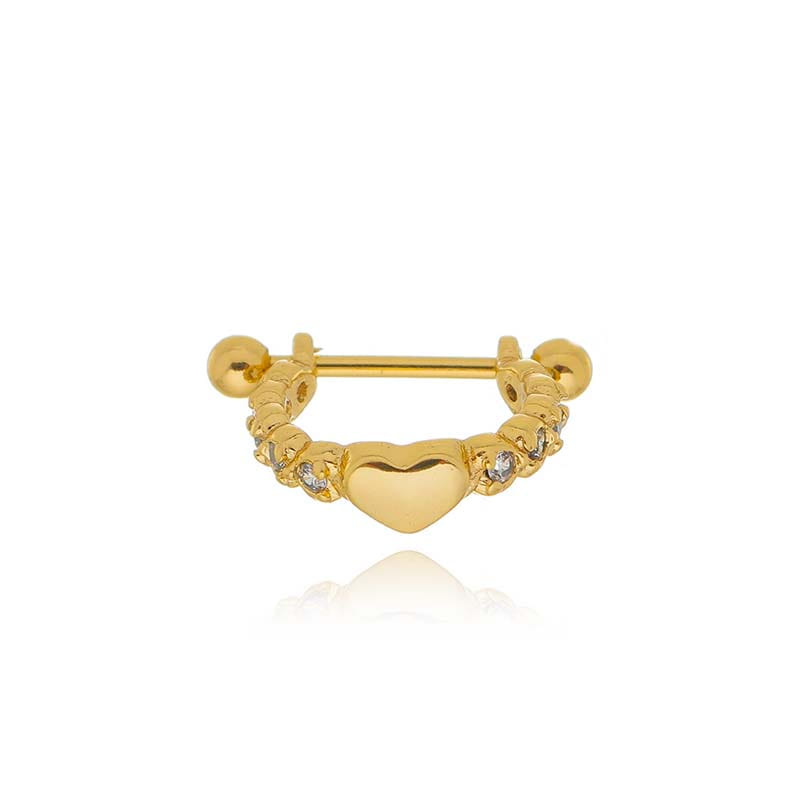 Piercing 2 Em 1 Meia Argola Zircônias Bolinhas E Coração Liso Folheado a Ouro 18K