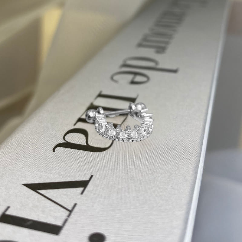 Piercing 2 em 1 Meia Argola Zircônias Ponteiras Folheado a Prata 925