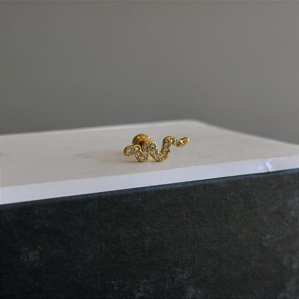 Piercing Cobra Cravejada Alongada Folheado a Ouro 18k