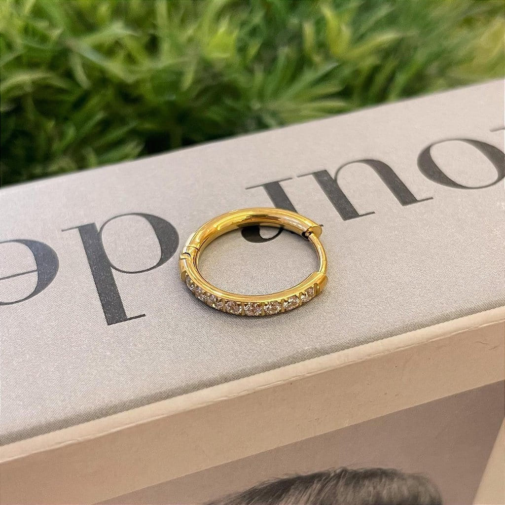 Piercing de Argola 12mm Click Cravejado Folheado a ouro 18K