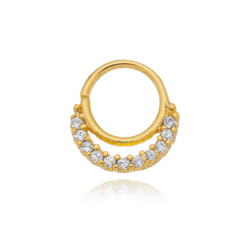 Piercing De Torção Fio Duplo Cravejado E Liso Folheado a Ouro 18K