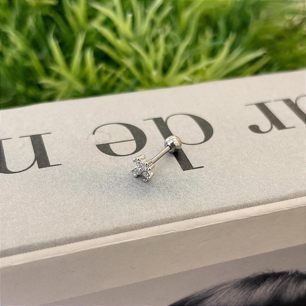 Piercing Flor Mini 4 Zircônias Steel
