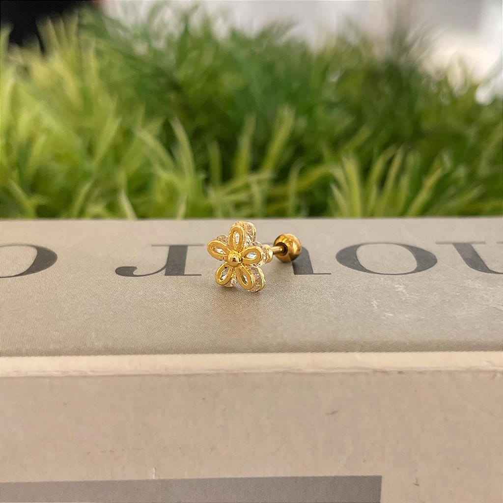 Piercing Flor Pétalas Zircônias Redondas Folheado a ouro 18K