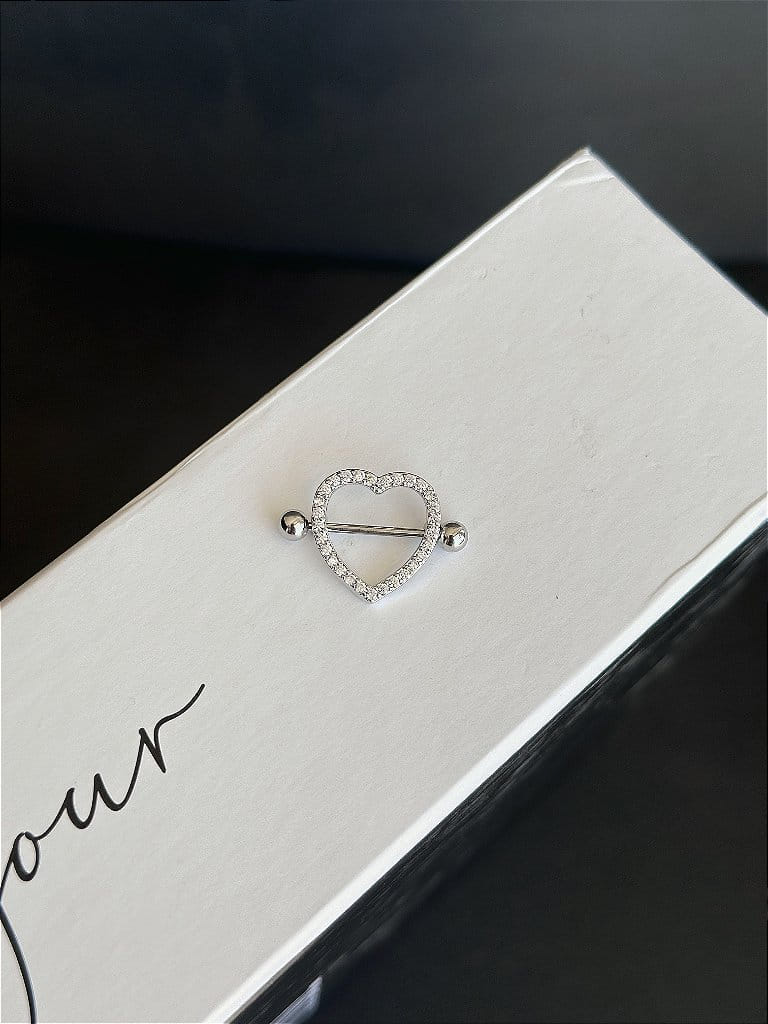 Piercing Mamilo Coração Cravejado Folheado a Prata 925