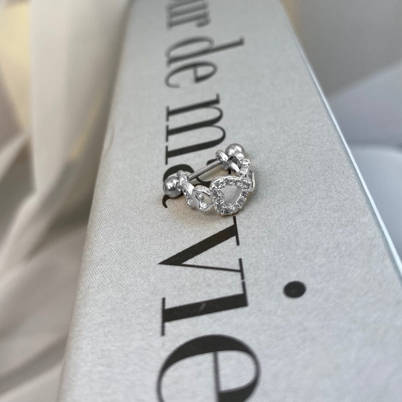 Piercing Meia Argola Helix Corações Lisos e Cravejado Folheado a Prata 925