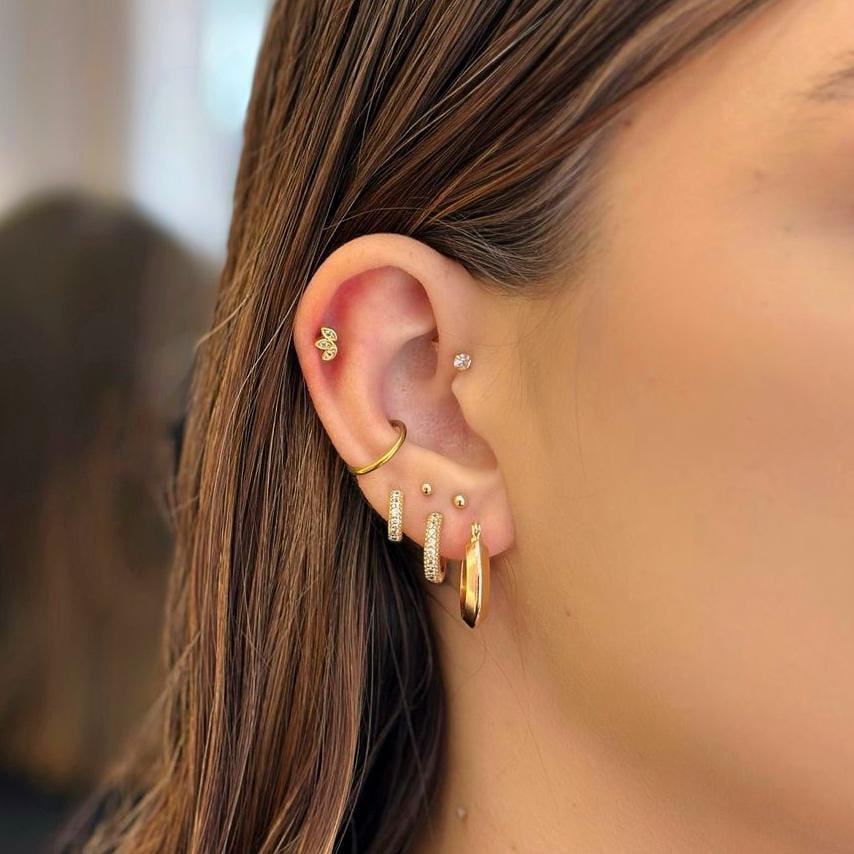 Piercing Meia Flor 3 Navetes Folheado a ouro 18K