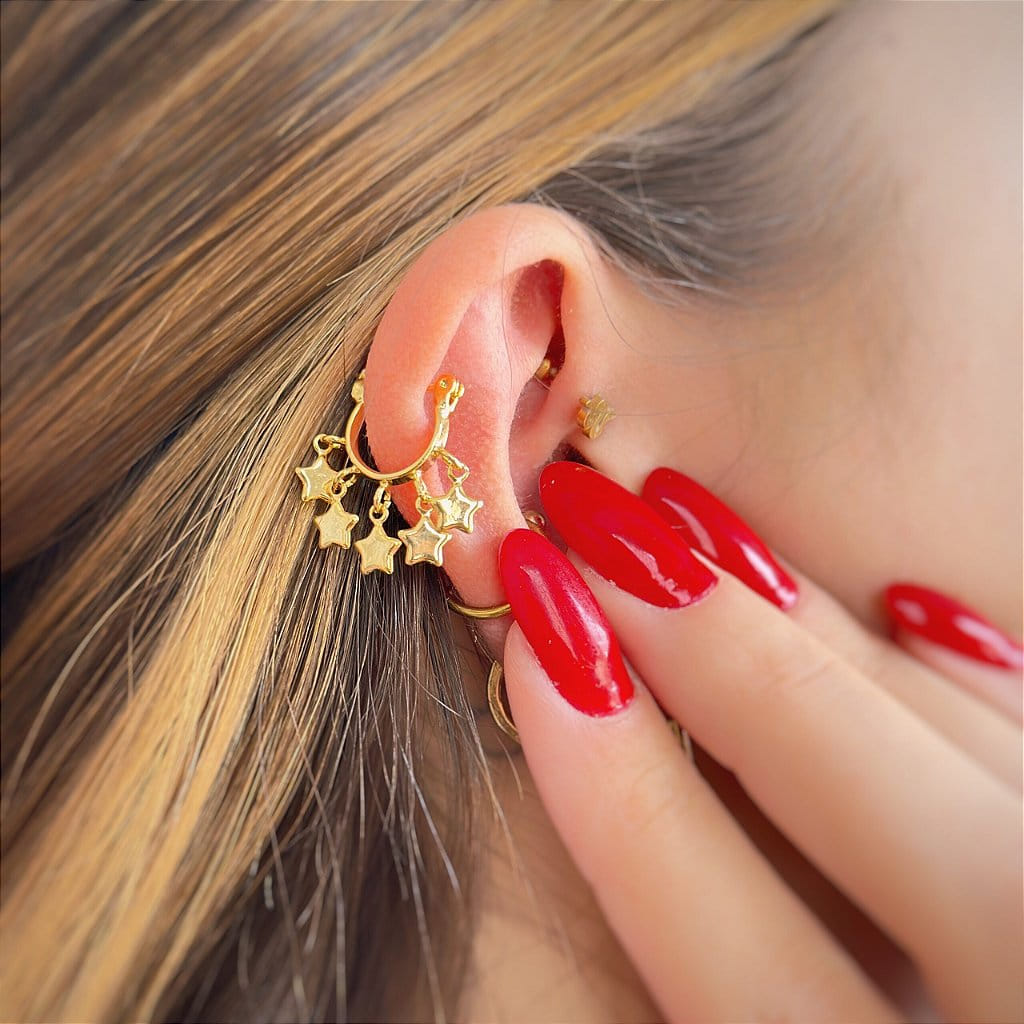 Piercing Pandeiro Estrela Lisa Folheado a Ouro 18K