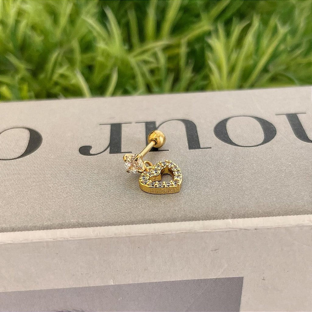 Piercing Ponto de Luz Pingente de Coração Vazado Cravejado Folheado a ouro 18K