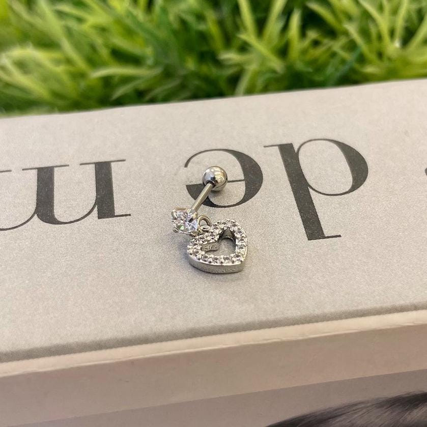 Piercing Ponto de Luz Pingente de Coração Vazado Cravejado Steel