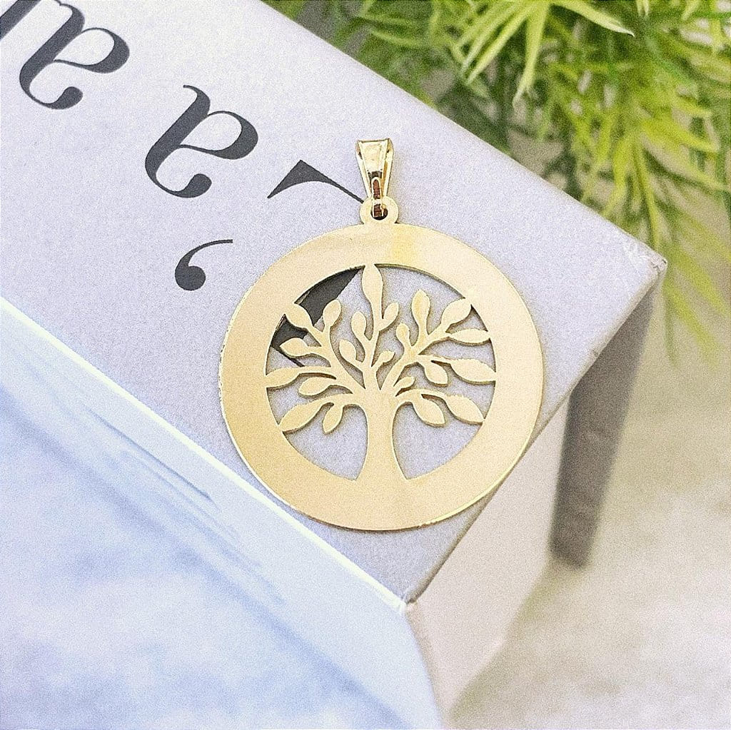 Pingente Árvore da Vida Gravação Folheado a Ouro 18K