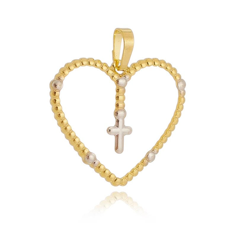 Pingente Coração Vazado Aro Bolinhas Detalhe Cruz Centro