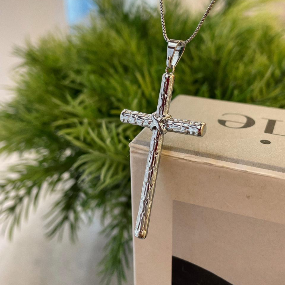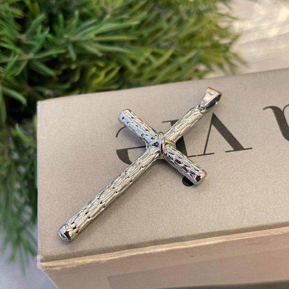 Moderno, marcante e cheio de significado, o Pingente Cruz Escamada folheado em Steel é perfeito para quem busca um acessório de fé com design diferenciado e visual imponente.
