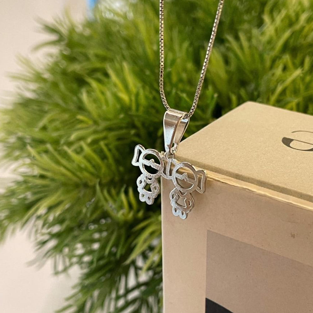 O design vazado em formato de duas meninas simboliza filhas, irmãs ou pessoas muito especiais, tornando essa peça ideal para mães, avós, madrinhas ou para quem deseja carregar consigo uma representação do seu maior amor.