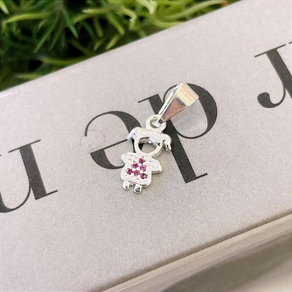 Pingente Menina Cravejada Rosa Folheado a prata 925