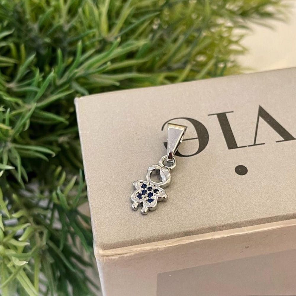 O pingente em formato de menino recebe zircônias azuis cravejadas, que trazem brilho delicado e um toque especial de cor à peça, tornando o acessório ainda mais encantador e ideal para presentear mães, avós, madrinhas ou para simbolizar alguém muito especial.