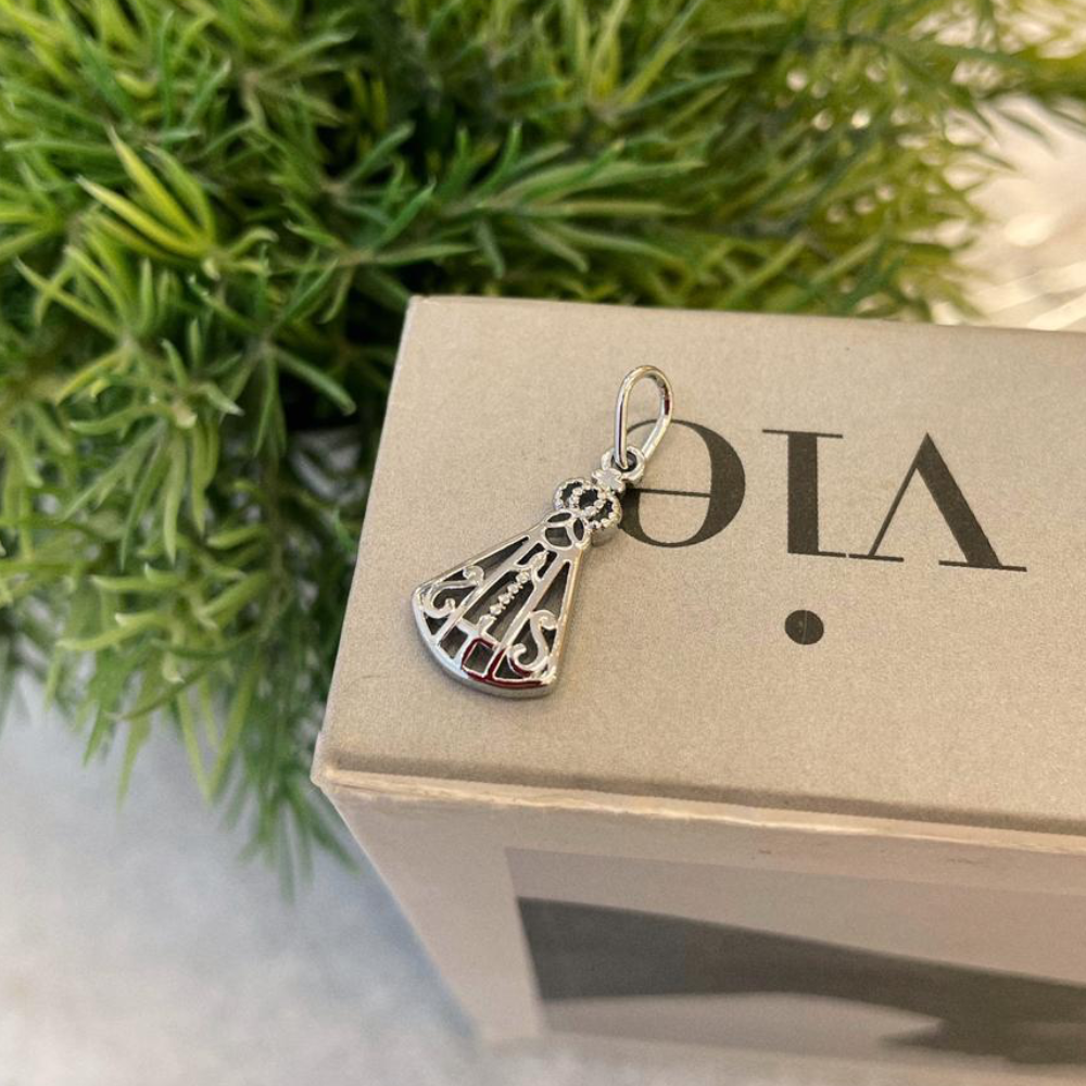 Pingente de Nossa Senhora Aparecida com design vazado e recortado